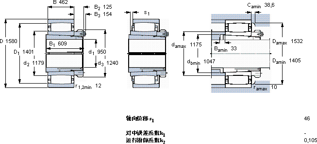 | 动态 | 静态 | 参照速度 | 限制速度 | 轴承 + 紧定套 | |||||||