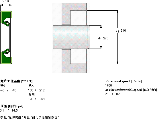 CR270x310x16HDS1R径向轴密封件近似的SKF轴承型号