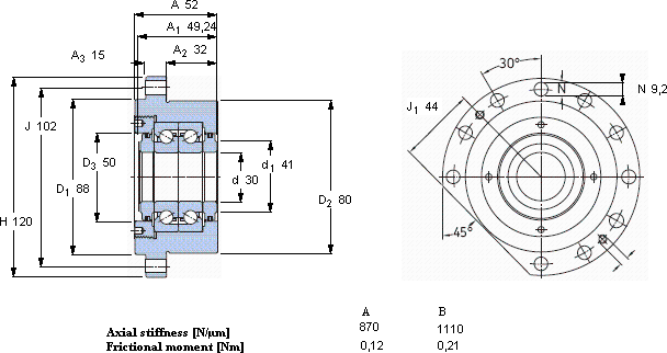 | 30 | 80 | 52 | 28,5 | 71 | 2,65 | 6400 | 3200 | 2,5 | FBSA 206/ DF | BSDU 230 FF | |