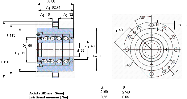 | 动态 | 静态 | 预压 | SKF | SNFA | |||||||
