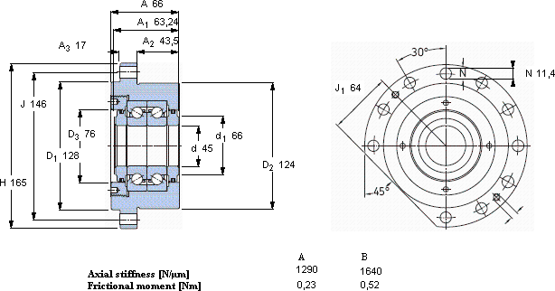 | 动态 | 静态 | 预压 | SKF | SNFA | |||||||