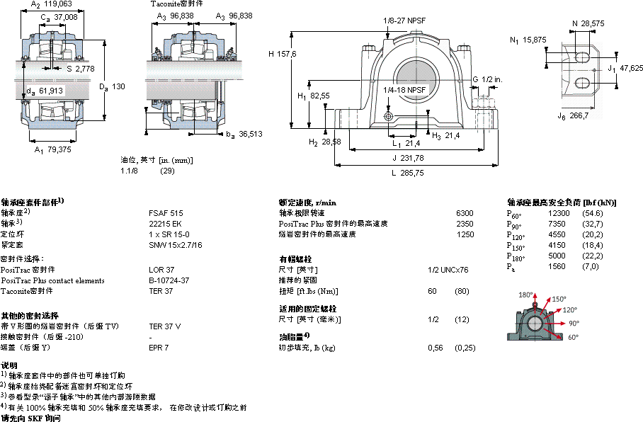 | | 型号 | 基本负荷额定值, | 主要数据尺寸 | 迷宫密封件 | PosiTrac 密封件 | PosiTrac Plus密封件 | Taconite密封件 |