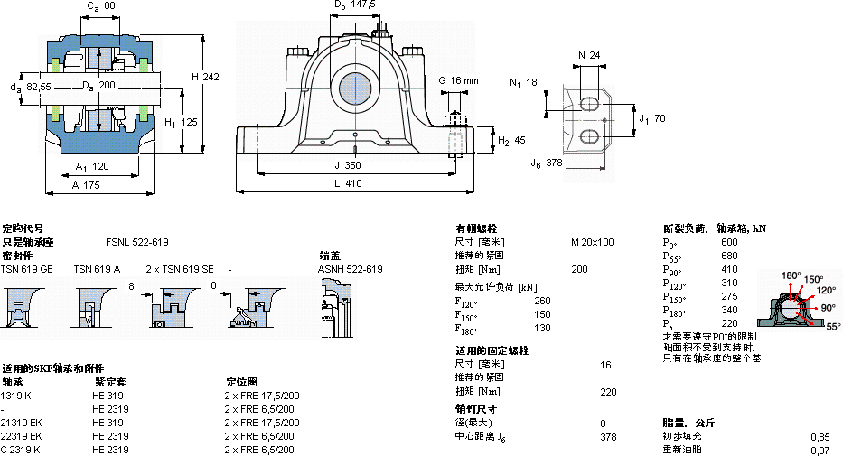 | 剖分立式轴承座, SNL,用于紧定套上的轴承,带标准密封,标准密封, 用于英制轴的轴承座 | ||||||||||||||||