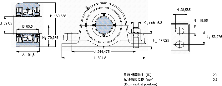 | 69,85 | 101,6 | 160,338 | 79,375 | 304,8 | 212 | 240 | 3400 | 11,6 | FSYE 2.3/4 N-118 | 22215 |