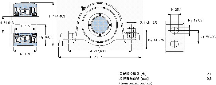 | 滚子轴承立式轴承座单元, SKF ConCentra,用于英制的轴, non-locating units, double-lip seals | |