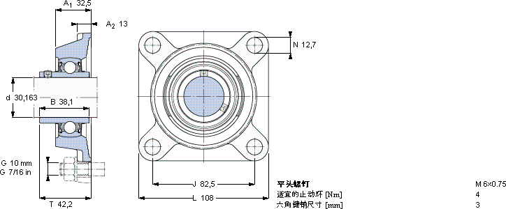 用于高温的Y-轴承单元,带法兰单元,方轴承座, 英制轴承