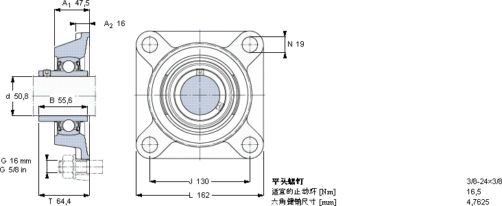 用于高温的Y-轴承单元,带法兰单元,方轴承座, 英制轴承