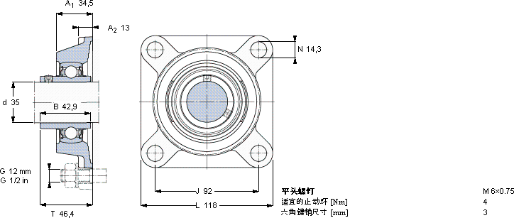 用于高温的Y-轴承单元,带法兰单元,方轴承座, 公制轴承