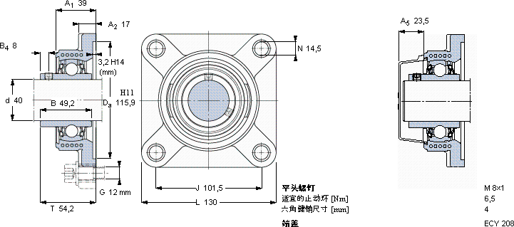| 40 | 39 | 101,5 | 130 | 54,2 | 30,7 | 19 | 2800 | 0,87 | FYKC 40 NTR/VE495 | FYKC 508 N | YAR 208-2RFG/VE495 | |