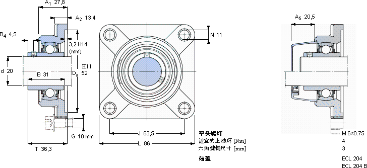 | 20 | 27,8 | 63,5 | 86 | 36,3 | 12,7 | 6,55 | 5000 | 0,28 | FYL 20 TR/VE495 | FYL 504 | YAR 204-2RF/VE495 |