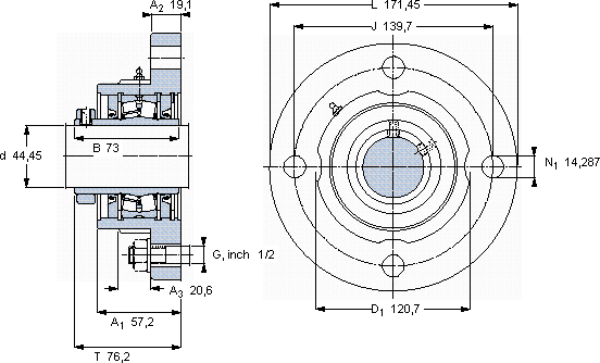 | 44,45 | 57,2 | 139,7 | 171,45 | 76,2 | 77 | 88,1 | 2650 | 4,99 | FYR 1.3/4 H-3 | 22209 |