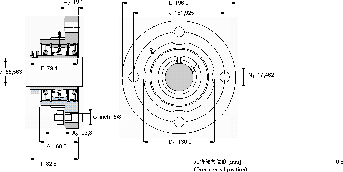 | 带法兰的滚子轴承单元, 锁定套,用于英制的轴, non-locating units, double-lip seals | |