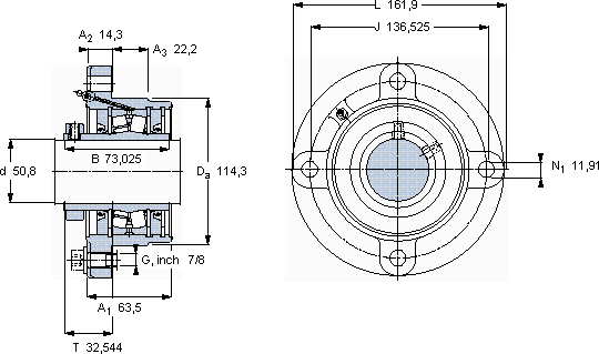 | 带法兰的滚子轴承单元, 锁定套和插口,用于英制的轴, locating units, radial shaft seals | |
