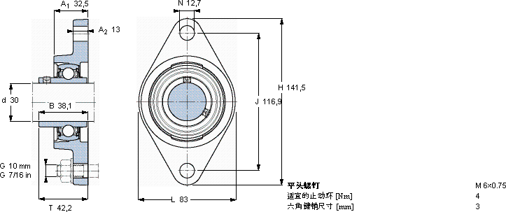 | 用于高温的Y-轴承单元,带法兰单元,椭圆轴承座, 公制轴承 |