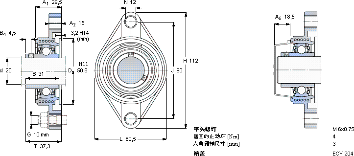 FYTBK20TRY-轴承法兰单元近似的SKF轴承型号