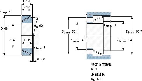 GAC40F角接触球面滑动轴承近似的SKF轴承型号