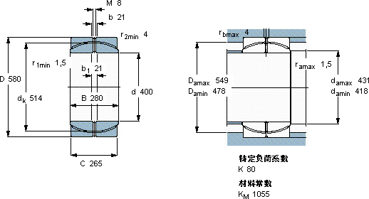 GEP400FS免维护的径向球面滑动轴承近似的SKF轴承型号