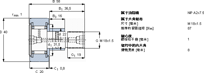 KRE40PPA滚轮轴承近似的SKF轴承型号