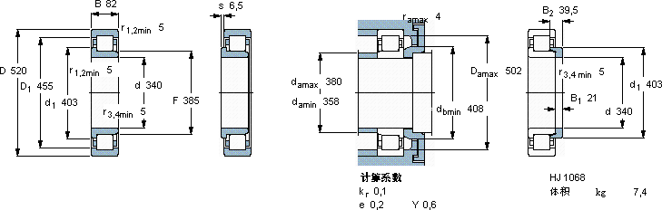 NJ1068MA圆柱滚子轴承近似的SKF轴承型号