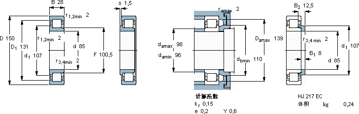 NJ217ECP*圆柱滚子轴承近似的SKF轴承型号