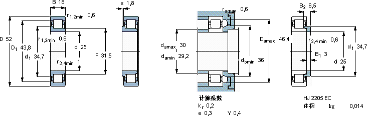 NJ2205ECP圆柱滚子轴承近似的SKF轴承型号