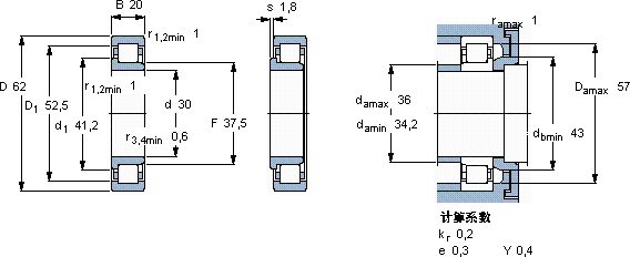 NJ2206ECP*圆柱滚子轴承近似的SKF轴承型号