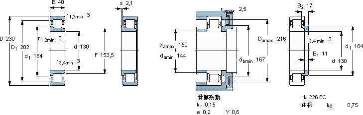 NJ226ECP*圆柱滚子轴承近似的SKF轴承型号