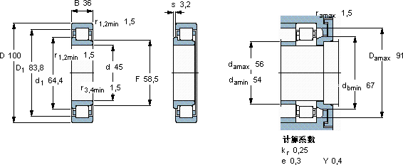 NJ2309ECML*圆柱滚子轴承近似的SKF轴承型号