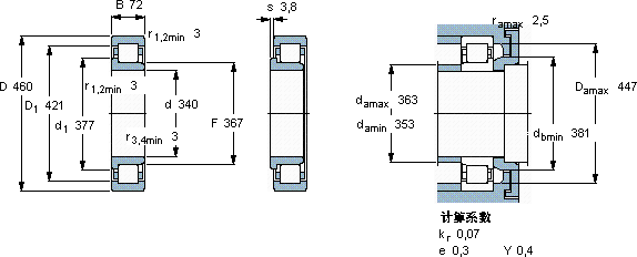 NJ2968ECMA圆柱滚子轴承近似的SKF轴承型号
