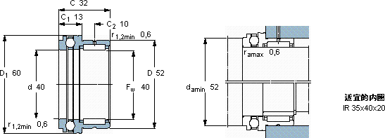 | 40 | 52 | 32 | 26,4 | 51 | 27 | 68 | 6,3 | 2,55 | 0,024 | 5000 | 7000 | 0,20 | NKX 40 | |