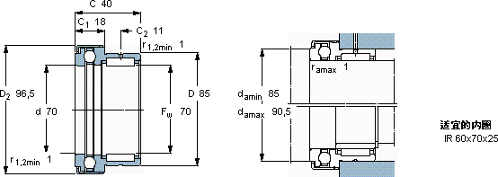 | 70 | 85 | 40 | 44,6 | 98 | 43,6 | 137 | 12,2 | 5,1 | 0,097 | 3400 | 2700 | 0,52 | NKX 70 Z | |