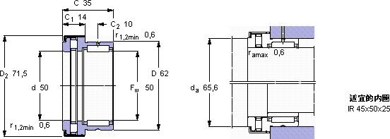 | 50 | 62 | 35 | 38 | 80 | 47,5 | 166 | 9,65 | 16,6 | 0,0022 | 2200 | 4300 | 0,29 | NKXR 50 Z | |