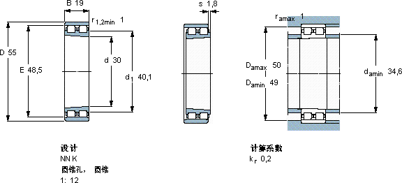 | 30 | 55 | 19 | 30,8 | 37,5 | 3,9 | 16000 | 18000 | 0,19 | NN 3006 KTN/SP |