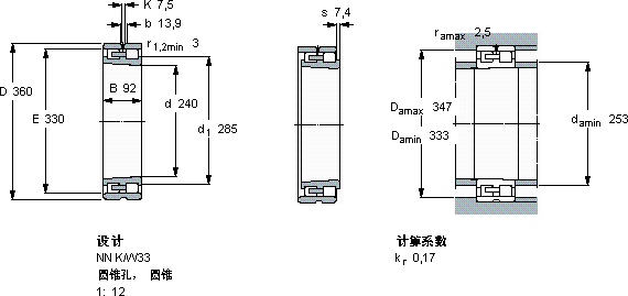 NN3048K/SPW33圆柱滚子轴承近似的SKF轴承型号