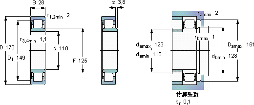 NU1022ML圆柱滚子轴承近似的SKF轴承型号