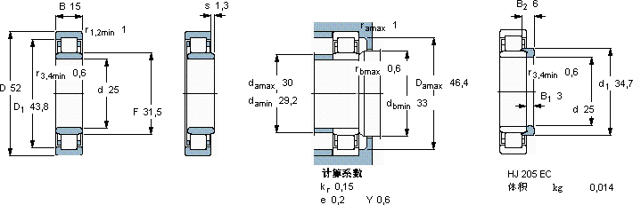 NU205ECP圆柱滚子轴承近似的SKF轴承型号