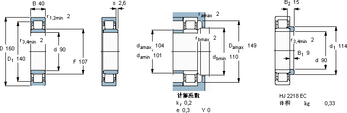 NU2218ECP*圆柱滚子轴承近似的SKF轴承型号