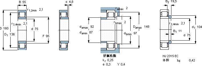 NU2315ECP*圆柱滚子轴承近似的SKF轴承型号
