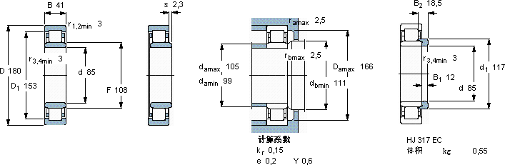 NU317ECP*圆柱滚子轴承近似的SKF轴承型号