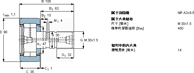 NUKR90A滚轮轴承近似的SKF轴承型号