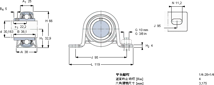 | Y-型立式轴承座单元, 冲压钢轴承座,平头螺钉锁定, 英制轴承 |