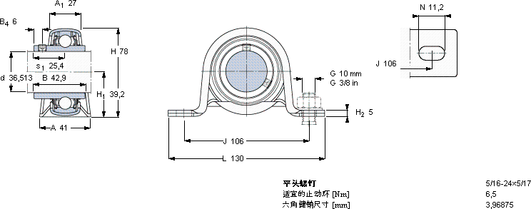 | Y-型立式轴承座单元, 冲压钢轴承座,平头螺钉锁定, 英制轴承 | |||||||||||||