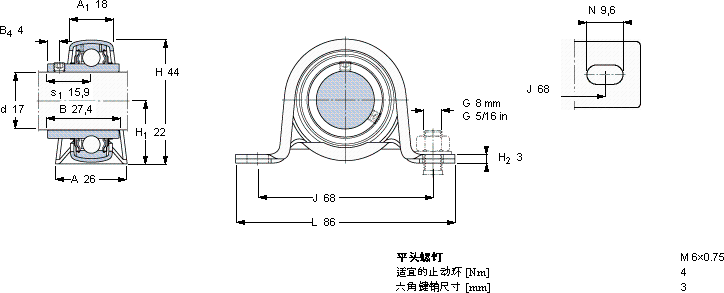 Y-型立式轴承座单元, 冲压钢轴承座,平头螺钉锁定, 公制轴承