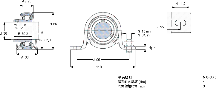 | Y-型立式轴承座单元, 冲压钢轴承座,平头螺钉锁定, 公制轴承 |