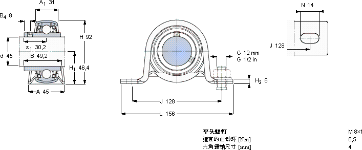 P45TRY-轴承座单元近似的SKF轴承型号