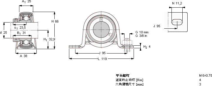 P62R-25FMY-轴承座单元近似的SKF轴承型号