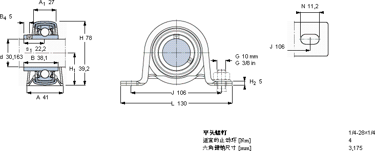 | d | A | H | H1 | L | C | C0 | 径向 | 单元 | | | | |
