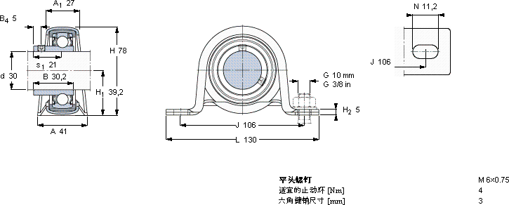 | Y-型立式轴承座单元, 冲压钢轴承座,平头螺钉锁定, 公制轴承 | |||||||||||||