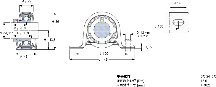 | Y-型立式轴承座单元, 冲压钢轴承座,偏心锁紧定轴环, 英制轴承 | |||||||||||||