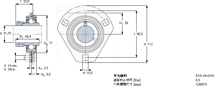 | 31,75 | 71 | 112 | 90,5 | 32,6 | 19,5 | 11,2 | 5 | 0,48 | PFD 1.1/4 AWF | PFD 62 | YEL 206-104-2F |